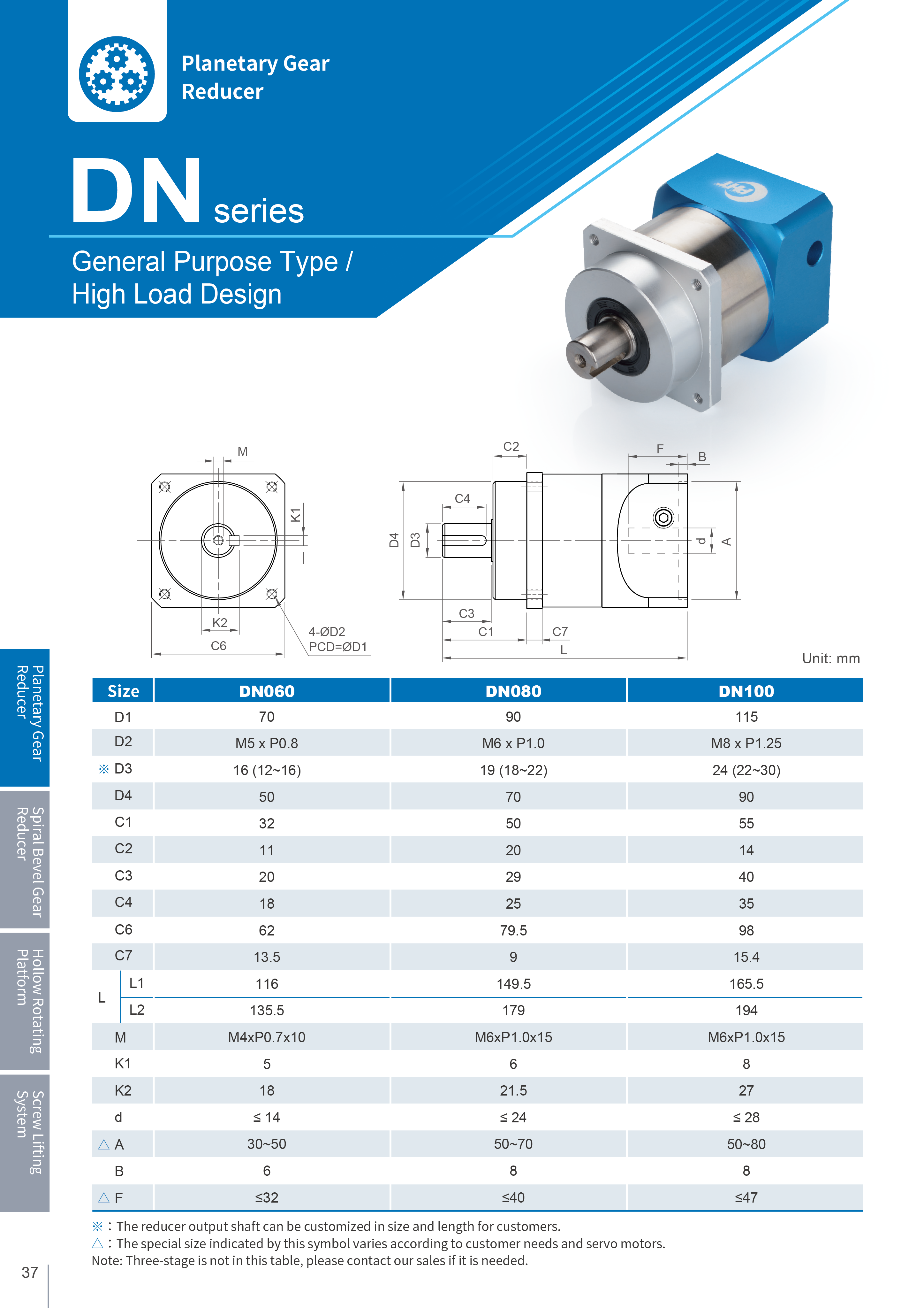 DN series offer premium performance in terms of radial and axial forces.It combines high performance with low coast and combact size,excellent reliability,simple installation and free maintenance.