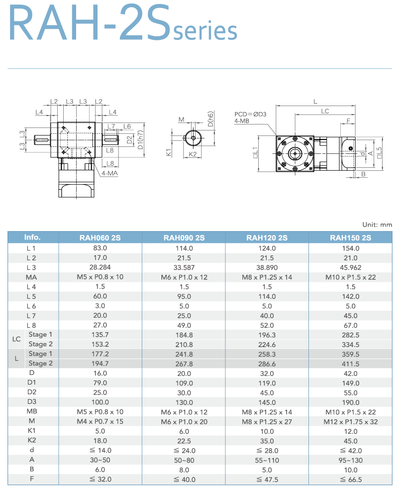 The RAH-2S right-angle gearbox has been developed specifically for all application, which is an ideal alternative to our precision series.